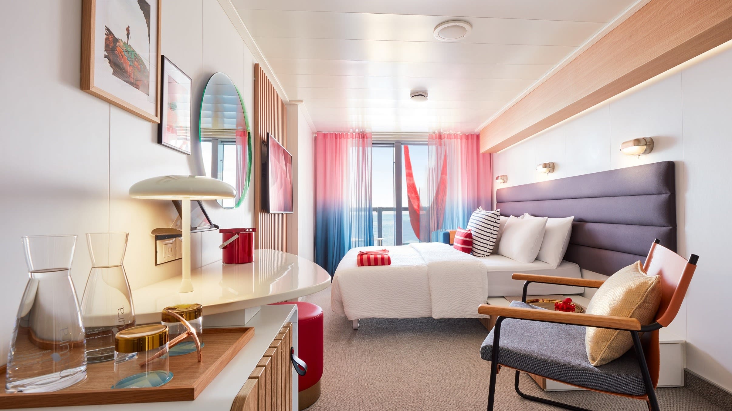 Το Valliant Lady διαθέτει 1.330 καμπίνες και δύο τεράστιες σουίτες, οι οποίες διαθέτουν τζακούζι. Όπως και το υπόλοιπο πλοίο, η Virgin Voyages λέει ότι ξεχωρίζουν για το «εκθαμβωτικό, σύγχρονο design τους».