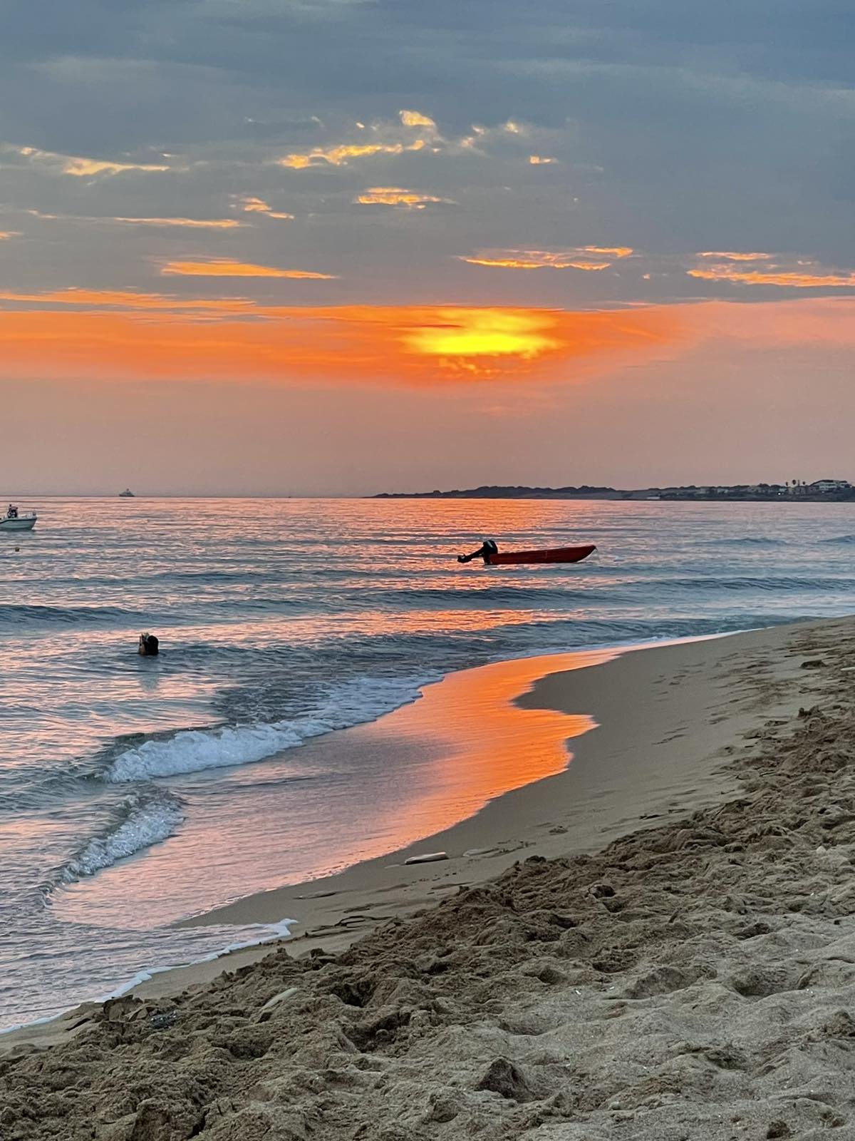 Το δικό μου ησυχαστήριο, τέλος, είναι στον Νότο στο χωριό του Αγίου Νικολάου. Εκεί, στο μέρος που γεννήθηκα, περπάτησα και έκανα τις πρώτες μου βουτιές περνάω συνήθως τις πιο πολλές ημέρες των διακοπών μου. Αυτές περιέχουν απαραιτήτως τσίπουρα και ούζα στην Ηλέκτρα κάτω από τις βελανιδιές, μία πετσέτα ξεχασμένη στην άμμο, όπως και ατελείωτο κολύμπι και βουτιές από τον μώλο του Τάσου στο Πανόραμα. Τις πιο πολλές βουτιές μου, όμως, τις κάνω λίγο πιο πέρα, στον θείο Σάββα που έχει την πιο τέλεια ταβέρνα και τα πιο φρέσκα ψάρια σε όλο το νησί. Με έναν περίεργο τρόπο το σκορδόψωμο της θείας Μαρίας συνδυάζεται τέλεια με ό,τι κι αν φάμε -καραβίδες, γαρίδες, μύδια σαγανάκι, τυροκαυτερή- και ό,τι κι αν πούμε στα συναπαντήματά μας με ανθρώπους που ξέρω πως οι συζητήσεις μαζί τους είναι καρδιάς και ουσίας.