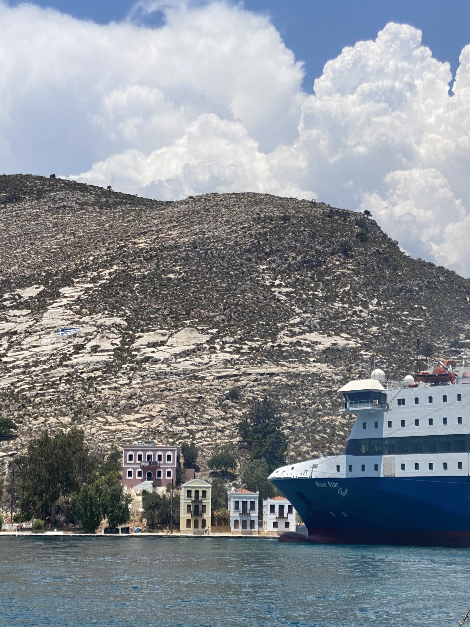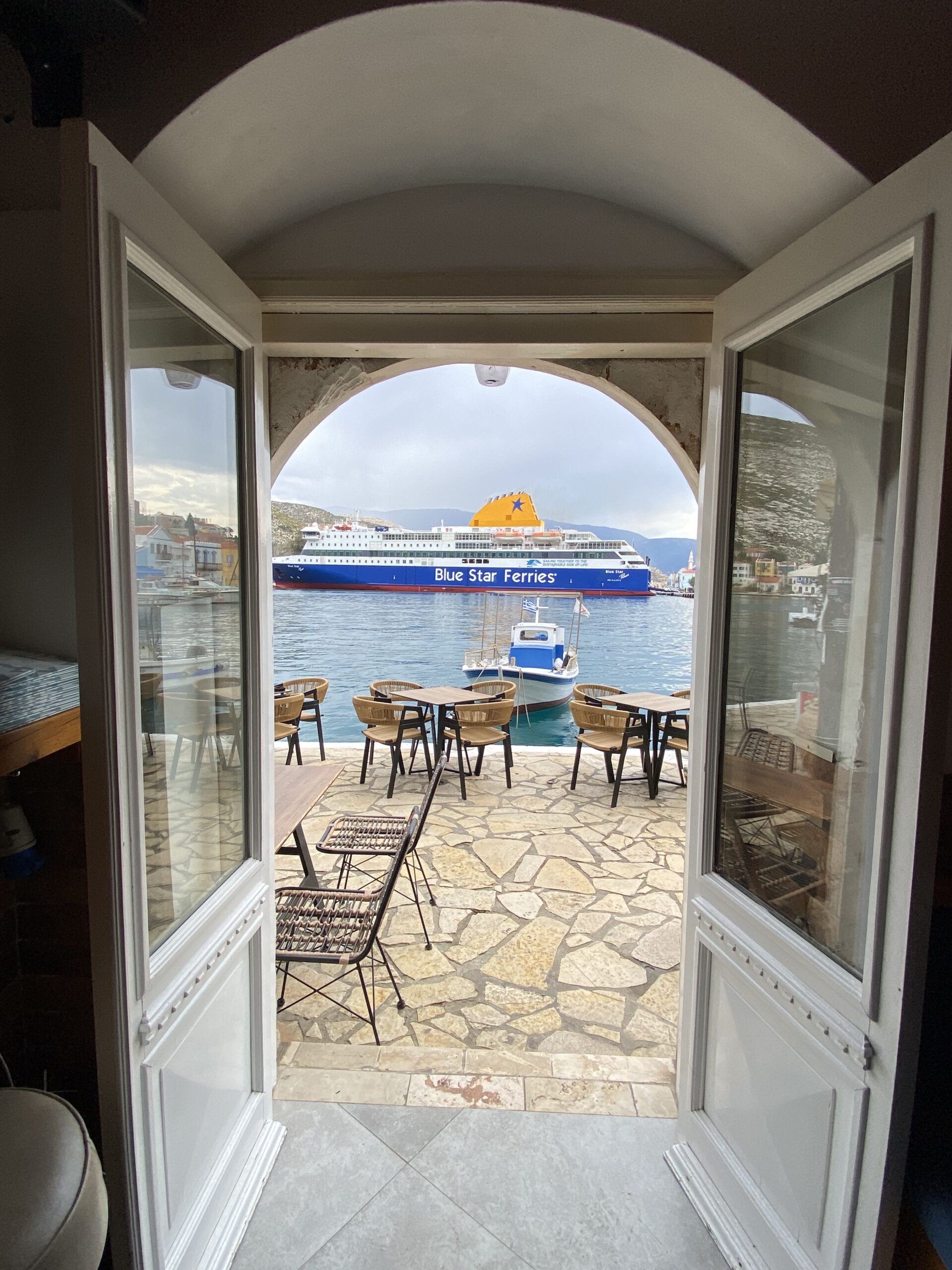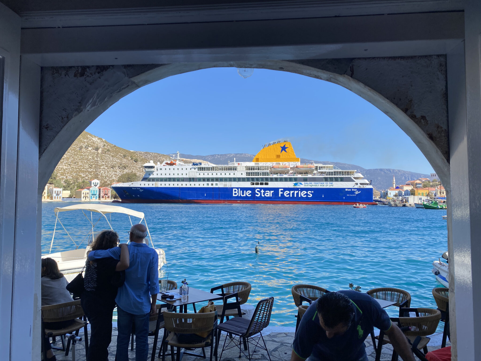 Και κάτι πρακτικό, πώς πας στο Καστελλόριζο: η εύκολη πρόσβαση μέσω Ρόδου, μόλις τρεις ώρες ταξίδι συνολικά, με αεροπορική σύνδεση. Αν όμως προτιμάς το πλοίο κι έχεις χρόνο, θα κάνεις από τον Πειραιά σχεδόν 24 ώρες ταξίδι, αλλά θα κλείσεις καμπίνα και θα το δεις σαν κρουαζιέρα, θα δεις ένα σωρό νησιά στη διαδρομή, το πλοίο είναι τεράστιο, δεν θα νιώσεις κούνημα και θα ζήσεις και δύο αξέχαστες εμπειρίες. Η μία, να ακούσεις τη βαθιά κόρνα του καραβιού να χαιρετάει περνώντας από τη Ρω και να δεις τον φαντάρο από το ψηλότερο φυλάκιο να ανταποδίδει τον χαιρετισμό, κουνώντας μία τεράστια σημαία, όπως έκανε η κυρά Δέσποινα. Και η άλλη, η πρώτη εικόνα, αντικρίζοντας το Καστελλόριζο φτάνοντας στο λιμάνι, όπως το περιγράφω στην αρχή. Μπορείς να κάνεις και συνδυασμό, να πας στη Ρόδο με αεροπλάνο και να πάρεις από εκεί το καράβι, που κάνει 3-3,5 ώρες ως το Καστελλόριζο. Σίγουρα συνιστώ το καράβι για την πρώτη φορά που θα πας.