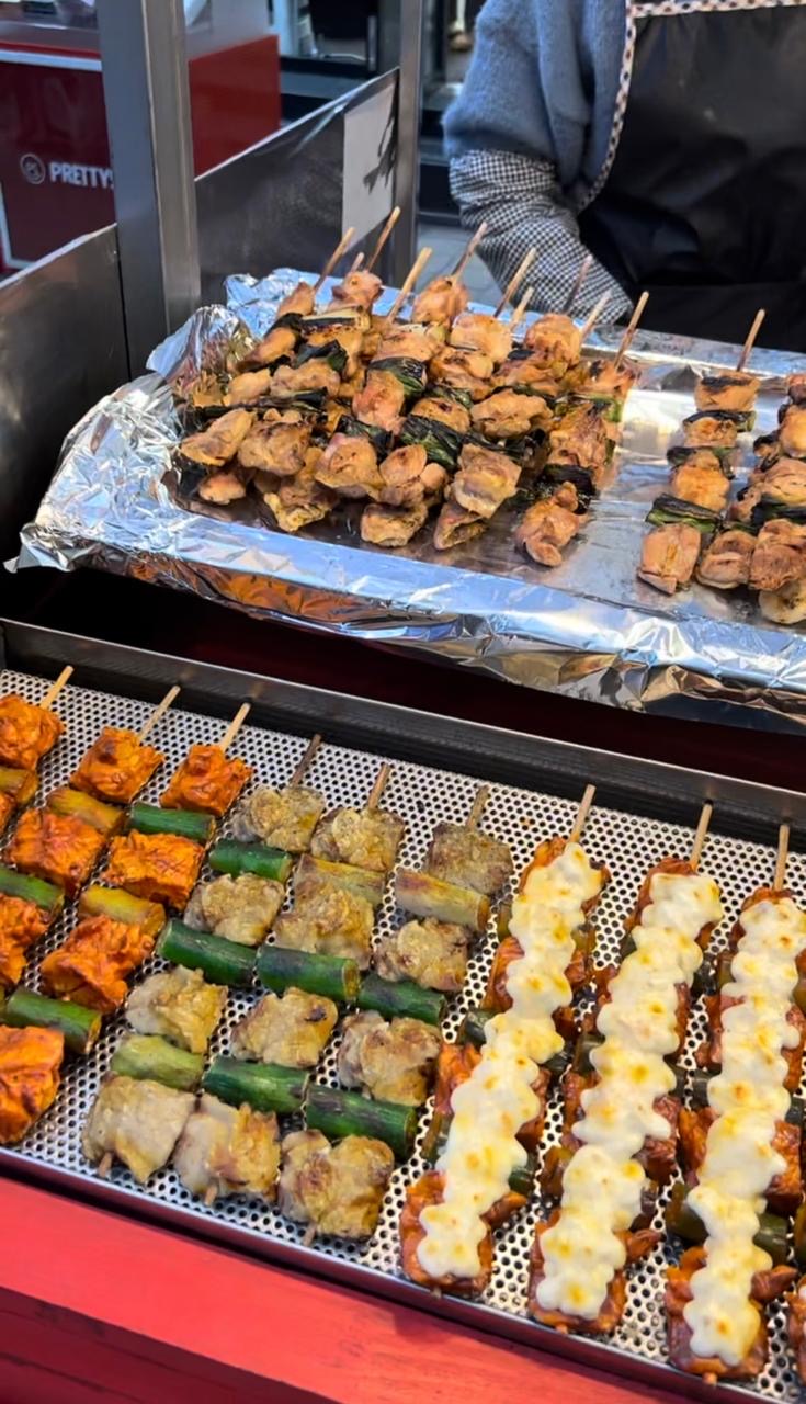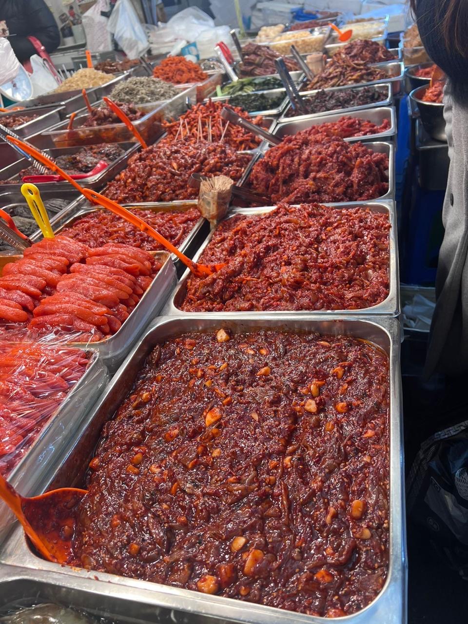 Αξίζει να δοκιμάσετε το street food της Σεούλ στους παραδοσιακούς πάγκους της Μιογκ Ντογκ (Myeong-dong). Εκεί θα δείτε από τους απλούς Κορεάτες μέχρι τους Τσέμπολ να τσιμπολογούν τα καυτερά Τόκποκι (teokbeokki – σνακ ρυζιού), τους μικρούς αστακούς και τα παραδοσιακά «σουβλάκια» ψαριού.
