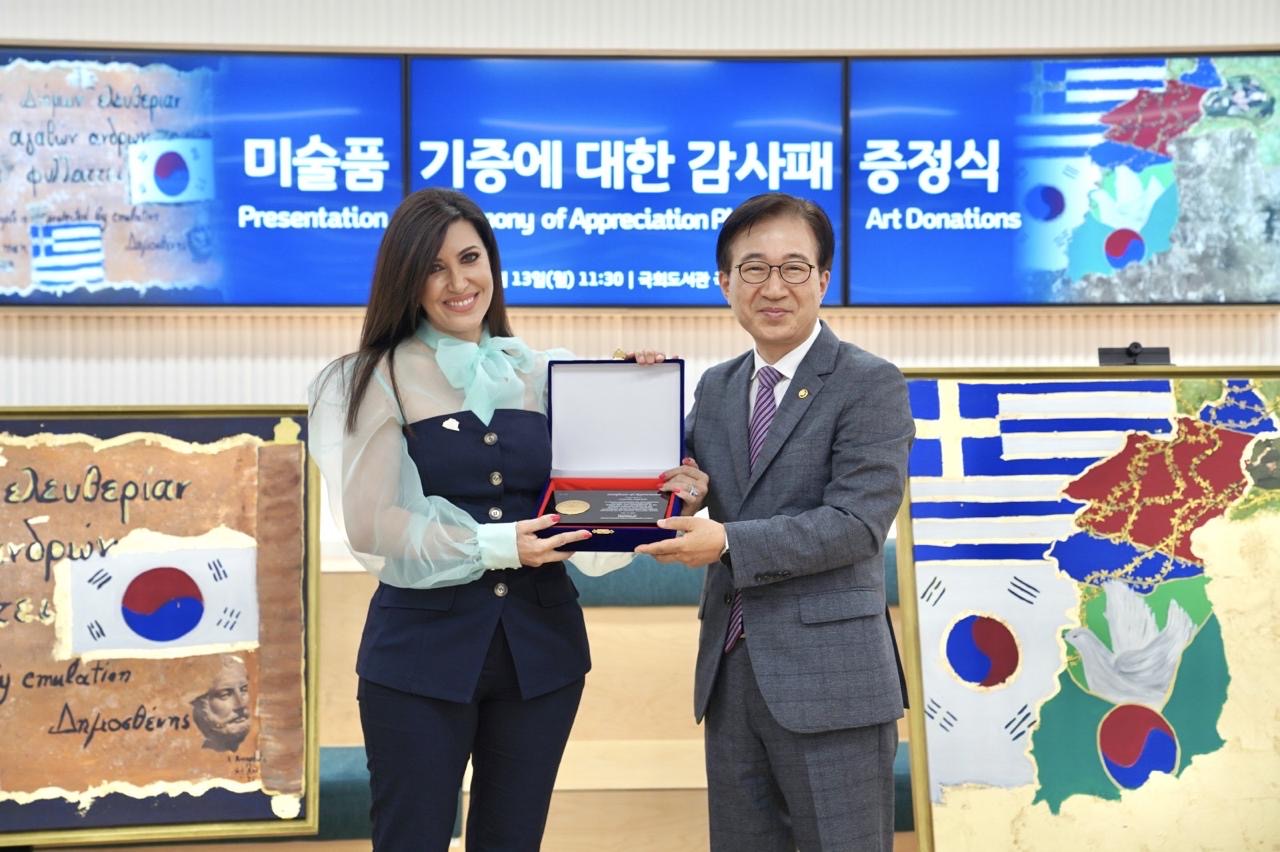 Το έργο “Ναυμαχία της Σαλαμίνας” βρίσκεται στο πολεμικό μουσείο της Σεούλ. Δύο ακόμα έργα κοσμούν την εθνοσυνέλευση. Ο “Κορεατικός πόλεμος” που βρίσκεται στην εθνική βιβλιοθήκη και ένα ρητό του Δημοσθένη. Για τα έργα αυτά έγινε μια τελετή βράβευσης. Είναι μεγάλη μου τιμή να βρίσκονται τα έργα μου σε τόσο εμβληματικά τοπόσημα της πόλης.
