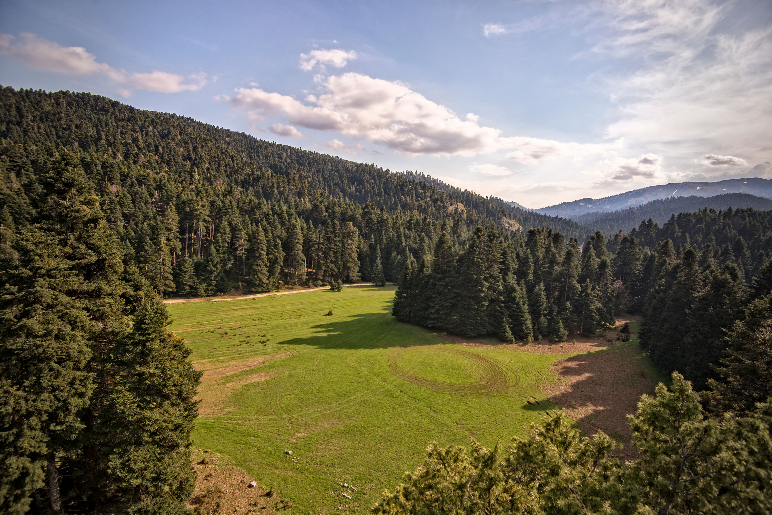 Και για το τέλος άφησα την αγαπημένη μου διαδρομή, στην Βρομονέρα. Μία πεδιάδα μέσα σε ένα καταπράσινο τοπίο γεμάτο έλατα στα Κοτύλαια Όρη. Όσες φορές και εάν έχω πάει (και είναι και πολλές) δεν τη χορταίνω με τίποτα. Κάθε εποχή και διαφορετικά χρώματα, κάθε φορά και διαφορετική εμπειρία. Στη διαδρομή θα διασχίσεις το ρέμα της Καρυάς (στα μισά του οποίου βρίσκεται και ένα από τα πολλά σπήλαια της περιοχής, το Αγίασμα), θα περάσεις από το δέντρο στον Εφταό με την τεράστια κουφάλα που χωράει και δύο ανθρώπους μέσα, και θα συναντήσεις και το όμορφο εκκλησάκι του Αγίου Κωνσταντίνου για να αράξεις και να ξεκουραστείς στον γυρισμό.
