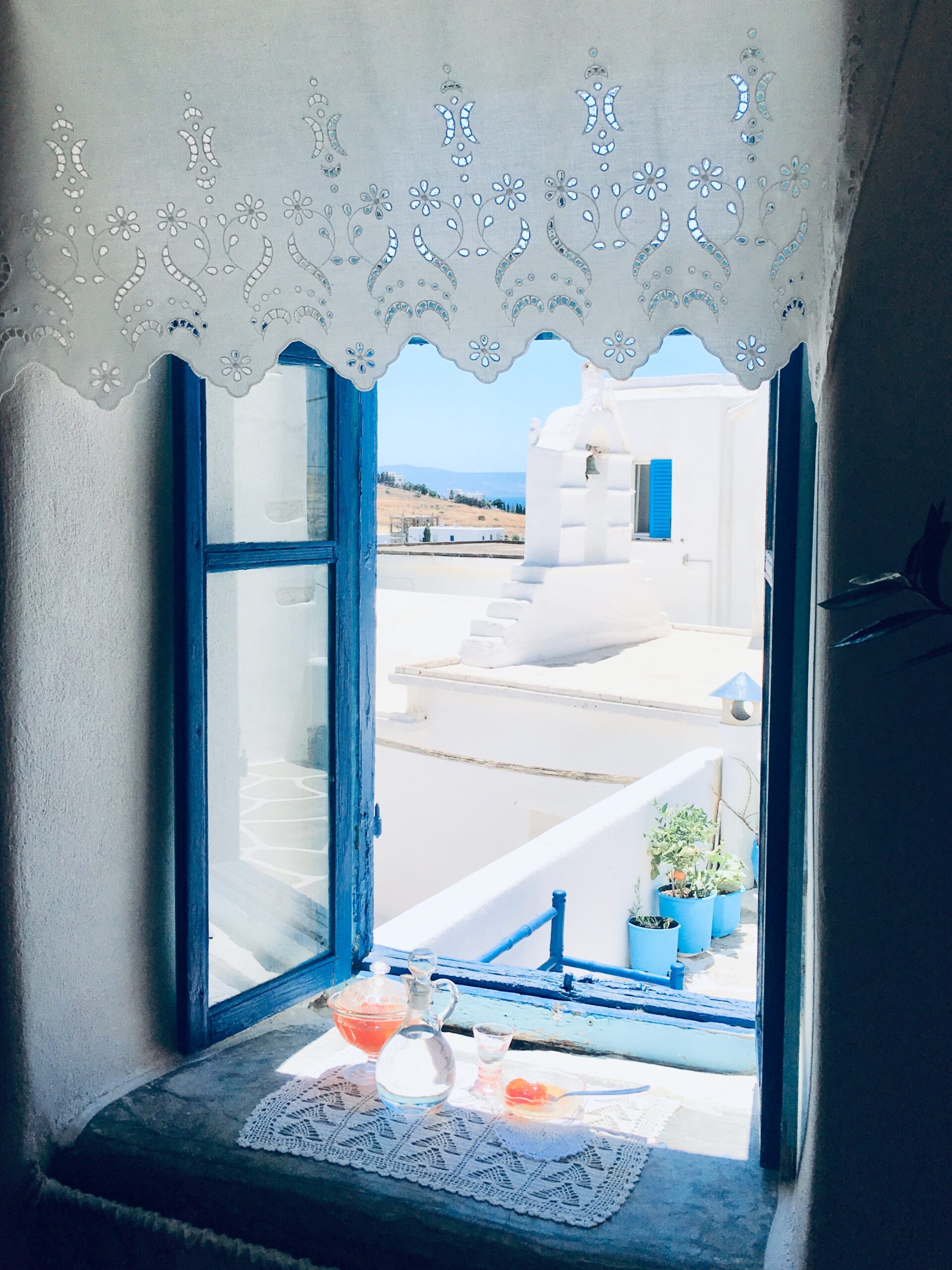 Κράτησα για το τέλος της βόλτας στο νησί, την αρχοντική Παροικιά, την πρωτεύουσα της Πάρου, με το λιμάνι της που σε φέρνουν τα πλοία. Η κρυφή γοητεία της παλιάς αριστοκρατίας της Παροικιάς ξεδιπλώνεται μόλις σεργιανήσεις στα σοκάκια της. Αρχοντόσπιτα με κρυφούς κήπους με πορτοκαλιές και λεμονιές, μαρμάρινες κρήνες που χρονολογούνται από το 1777, βόλτα, μπαλκονάκια με μαρμάρινα φουρούσια και εκκλησίες με παλιές τοιχογραφίες. Η αγορά της κρατάει κάτι από την αυθεντική εποχή της. Θα περάσω από το παντοπωλείο του Διπλού που δεν το έχουν αγγίξει τα χρόνια. Θα χαζέψω το κουρείο που δεν λειτουργεί πλέον όμως η οικογένεια το κράτησε ανέπαφο. Ένα ταξίδι στο χρόνο. Θα ρίξω κρυφές ματιές, από τις ανοιχτές πόρτες και τα παράθυρα των σπιτιών όταν το αεράκι σηκώνει την δαντελωτή κουρτίνα. Άπιαστη αίσθηση της διαχρονικότητας. Θα ακολουθήσω την μυρωδιά του γιασεμιού που θα με βγάλει σε μικρούς κήπους.
