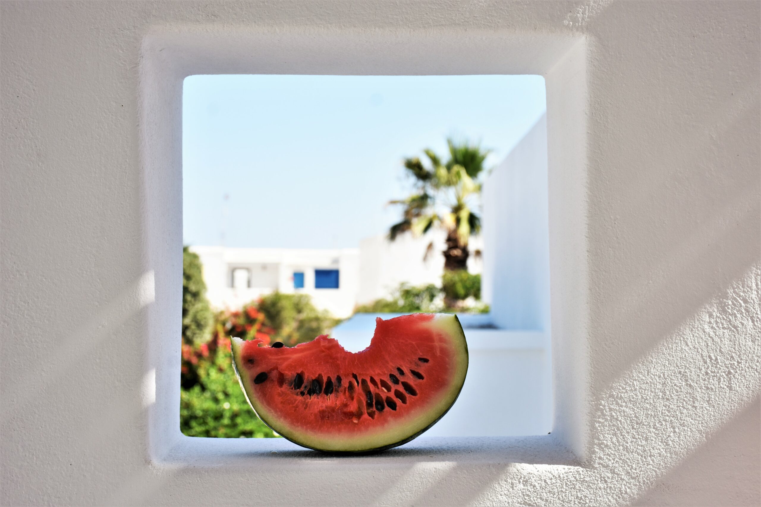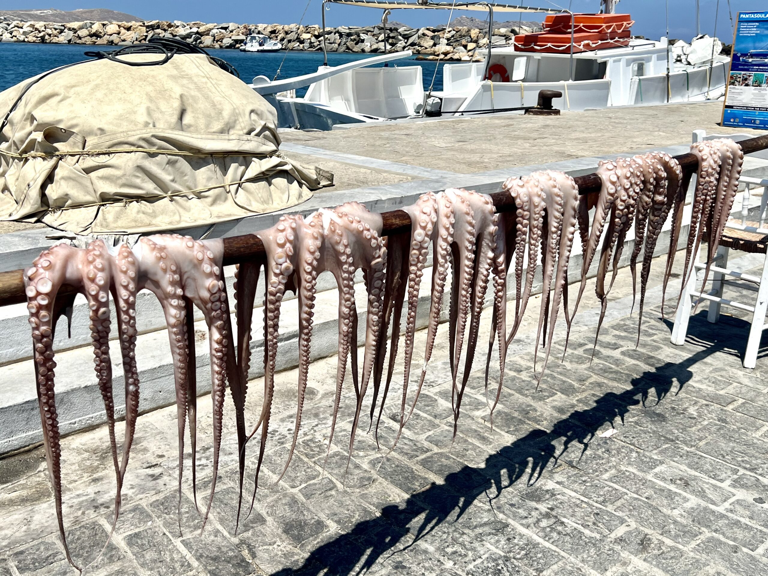 Στην παραλία, πίσω από το εκκλησάκι του Αι Νικόλα, νωρίς το πρωί πηγαίνω για να βρω τους αγρότες που φέρνουν τα καλούδια από τον παριανό μπαξέ τους. Αγοράζω ντομάτες που δεν έχουν ελκυστική όψη είναι όμως όλο γλύκα καθώς και άλλα ζαρζαβατικά.