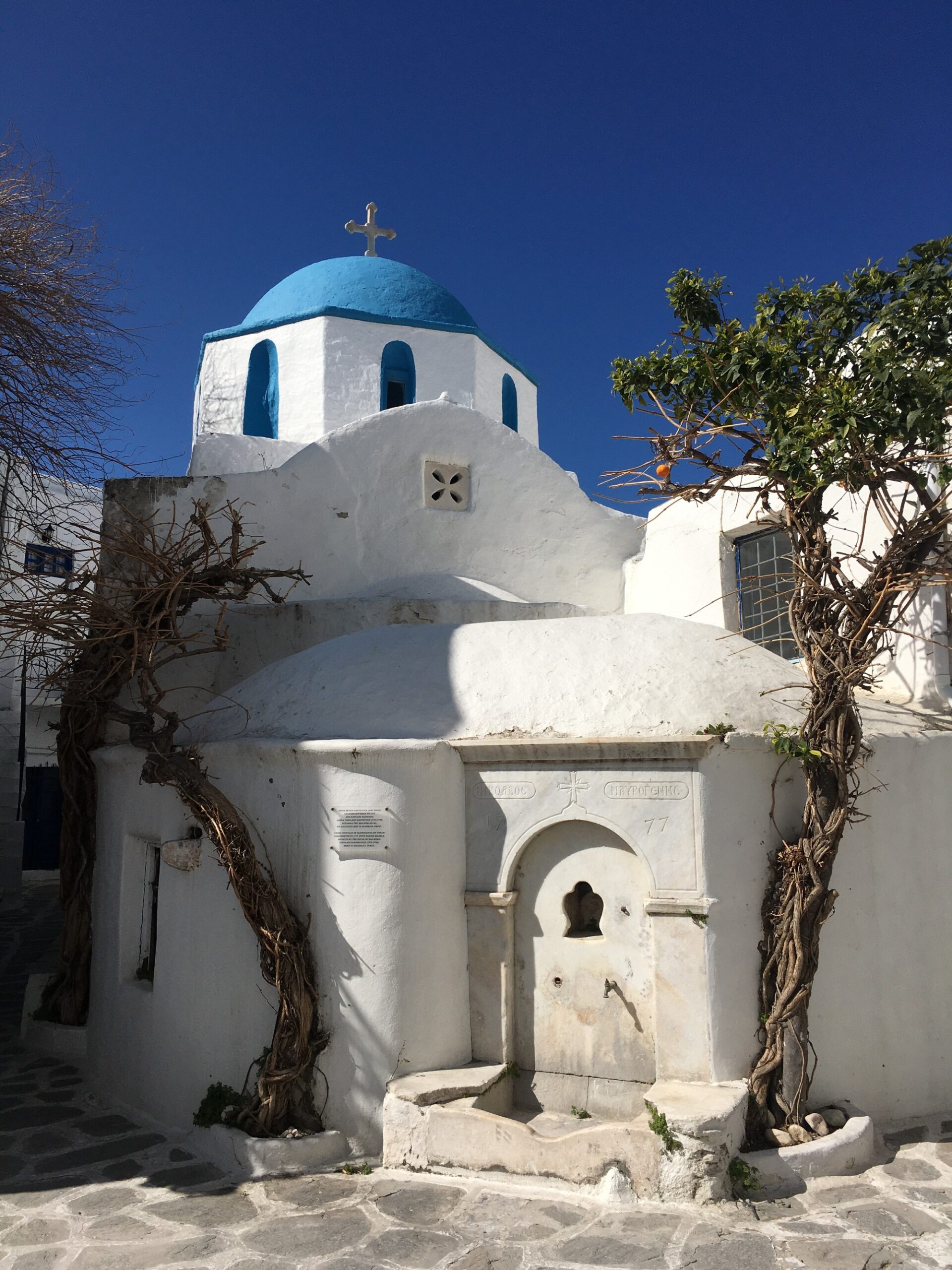 Κράτησα για το τέλος της βόλτας στο νησί, την αρχοντική Παροικιά, την πρωτεύουσα της Πάρου, με το λιμάνι της που σε φέρνουν τα πλοία. Η κρυφή γοητεία της παλιάς αριστοκρατίας της Παροικιάς ξεδιπλώνεται μόλις σεργιανήσεις στα σοκάκια της. Αρχοντόσπιτα με κρυφούς κήπους με πορτοκαλιές και λεμονιές, μαρμάρινες κρήνες που χρονολογούνται από το 1777, βόλτα, μπαλκονάκια με μαρμάρινα φουρούσια και εκκλησίες με παλιές τοιχογραφίες. Η αγορά της κρατάει κάτι από την αυθεντική εποχή της. Θα περάσω από το παντοπωλείο του Διπλού που δεν το έχουν αγγίξει τα χρόνια. Θα χαζέψω το κουρείο που δεν λειτουργεί πλέον όμως η οικογένεια το κράτησε ανέπαφο. Ένα ταξίδι στο χρόνο. Θα ρίξω κρυφές ματιές, από τις ανοιχτές πόρτες και τα παράθυρα των σπιτιών όταν το αεράκι σηκώνει την δαντελωτή κουρτίνα. Άπιαστη αίσθηση της διαχρονικότητας. Θα ακολουθήσω την μυρωδιά του γιασεμιού που θα με βγάλει σε μικρούς κήπους.