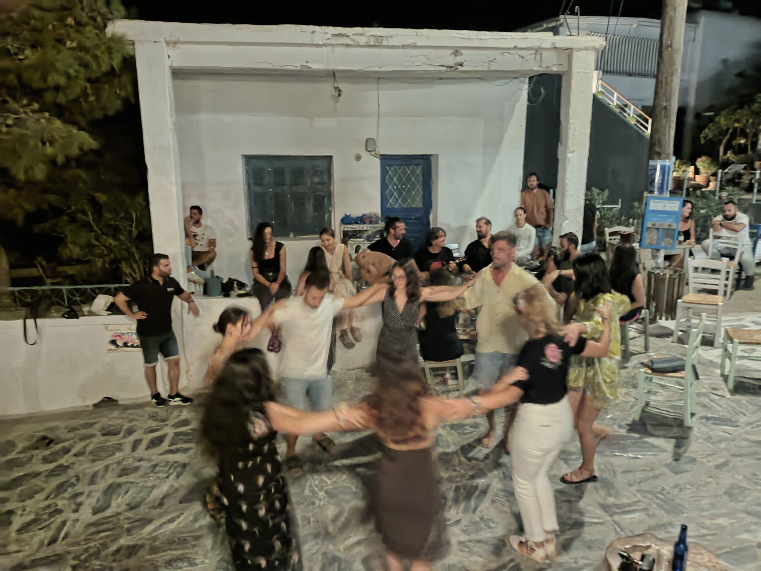 Αυτό το μικρό νησί με τους 200 κάτι μόνιμους κατοίκους, εμάς και τους τουρίστες, έμοιαζε με καράβι. Ένα καράβι που ταξιδεύει νύχτα μέρα και δεν κοιμάται σχεδόν ποτέ. Το «κατάστρωμα» γεμάτο παρέες και με το τίποτα στήνονται συνεχώς χοροί. Χωρίς να καταλάβω, ξόμεινα. Τραβάτε με και ας κλαίω δηλαδή. «Έψησα» τον εαυτό μου ότι εκείνοι με ανάγκασαν να μείνω παραπάνω και να ξαναπαίξω αλλού, στο μεγάλο Βράχο.