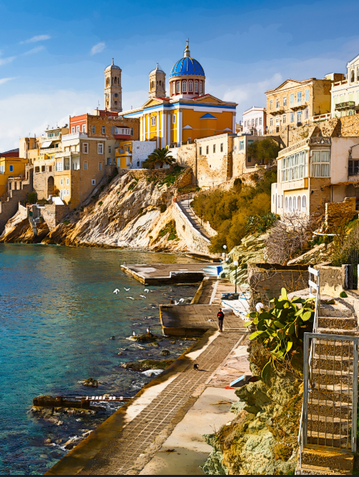 Η Σύρος είναι η πρωτεύουσα των Κυκλάδων και ένα από τα αγαπημένα μου νησιά. Από την πρώτη στιγμή που πάτησα το πόδι μου εκεί γοητεύτηκα από αυτό το κυκλαδονήσι με την έμφυτη μεγαλοπρέπεια . Ρετρό ατμόσφαιρα με φόντο το Αιγαίο.