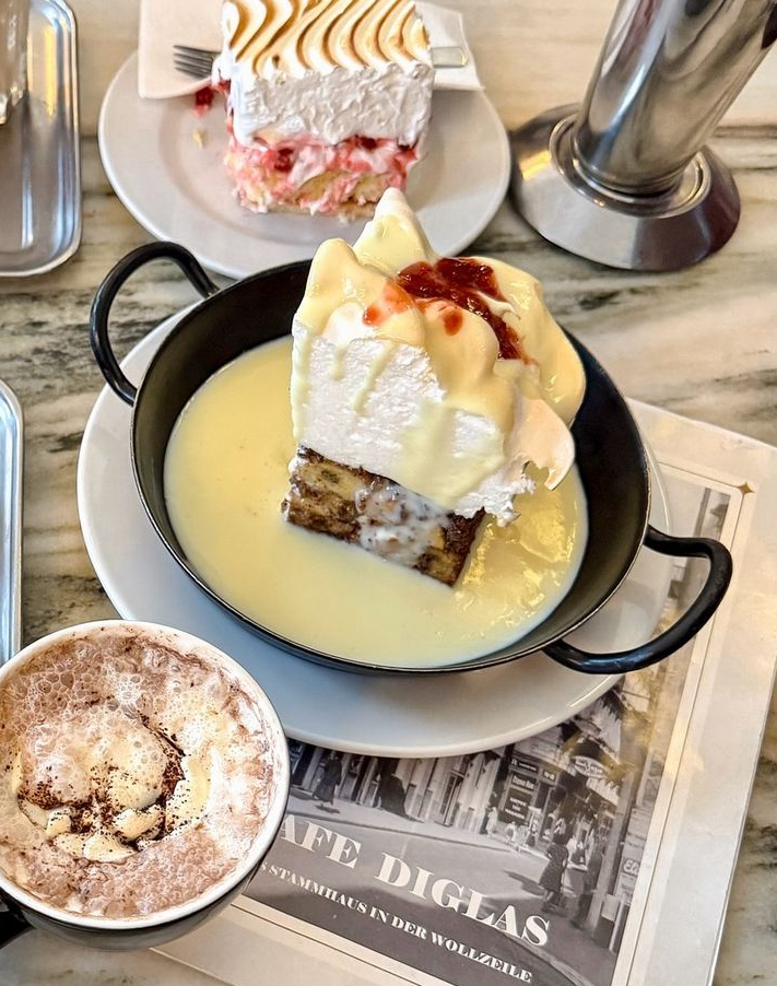 Και μετά από μια τέτοια νύχτα, τί καλύτερο από ένα πιάτο Kaiserschmarrn; Πρόκειται για μια αφράτη, τεμαχισμένη τηγανίτα, πασπαλισμένη με ζάχαρη άχνη και σταφίδες που συνοδεύεται με κομπόστα φρούτων. Η ιστορία λέει ότι το Kaiserschmarrn ήταν το αγαπημένο φαγητό του αυτοκράτορα Franz Josef Α’, ο οποίος απολάμβανε αυτό το γλυκό τόσο πολύ που έγινε βασικό έδεσμα της αυστριακής κουζίνας. Για μένα είναι το καλύτερο comfort food! Άλλωστε, ποιος μπορεί να αντισταθεί σε μια λιχουδιά που έχει βασιλική έγκριση;