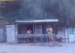 Μια μεγάλη καλύβα ήταν εκεί, για να κοιμόμαστε στρωματσάδα και να έχουμε τα λιγοστά πράγματά μας, και ακριβώς δίπλα της, μια πιο μικρή, που αποτελούσε την κουζίνα, με ένα πετρογκάζ μέσα, για να μαγειρεύει η μάνα μας.