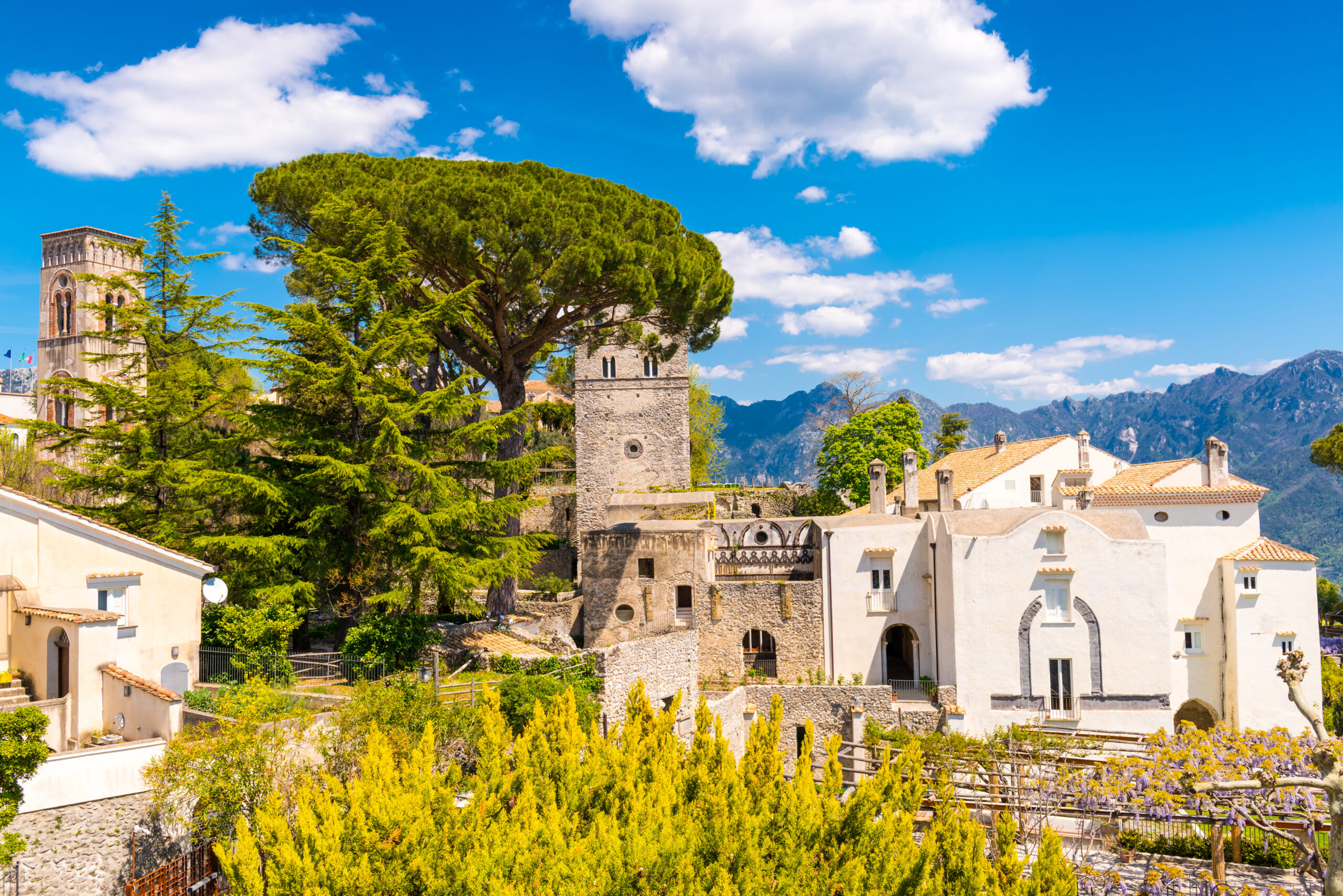 Χτισμένο στα βουνά Lattari, ψηλά στις πράσινες πλαγιές και τα απόκρημνα βράχια, το Ravello στέκεται περήφανο πάνω από το Amalfi, αγκαλιάζοντας με το βλέμμα του ολόκληρη την ακτή, προσφέροντας – χωρίς καμία υπερβολή – την πιο όμορφη, μαγική και πολύτιμη θέα. Η έντονη μεσαιωνική ατμόσφαιρα, τα ρομαντικά παλάτια και οι βίλες, οι καταπράσινοι κήποι, οι μεγάλες βεράντες, τα πολύχρωμα κεραμικά και το σπιτικό limoncello, σε κάνουν να νιώθεις ότι περπατάς μέσα σε ένα έργο Τέχνης. Καταφύγιο μουσικών, συνθετών και συγγραφέων που ψάχνουν έμπνευση μέσα στη γοητεία του και τόπος γέννησης έργων όπως ο ‘’Εραστής της Λαίδης Τσάτερλι’’ και της δεύτερης πράξης της όπερας ‘’Parsifal’’ του σπουδαίου Γερμανού συνθέτη Richard Wagner. Το μοναδικό πράγμα που οφείλεις να κάνεις στο Ravello, είναι να το περπατήσεις, να χαθείς στα δρομάκια, τους κήπους και τα μνημεία του και αυτό θα σε ανταμείψει με δύο από τις ομορφότερες βίλες που θα δεις στη ζωή σου, τη Villa Rufolo και τη Villa Cimbrone.