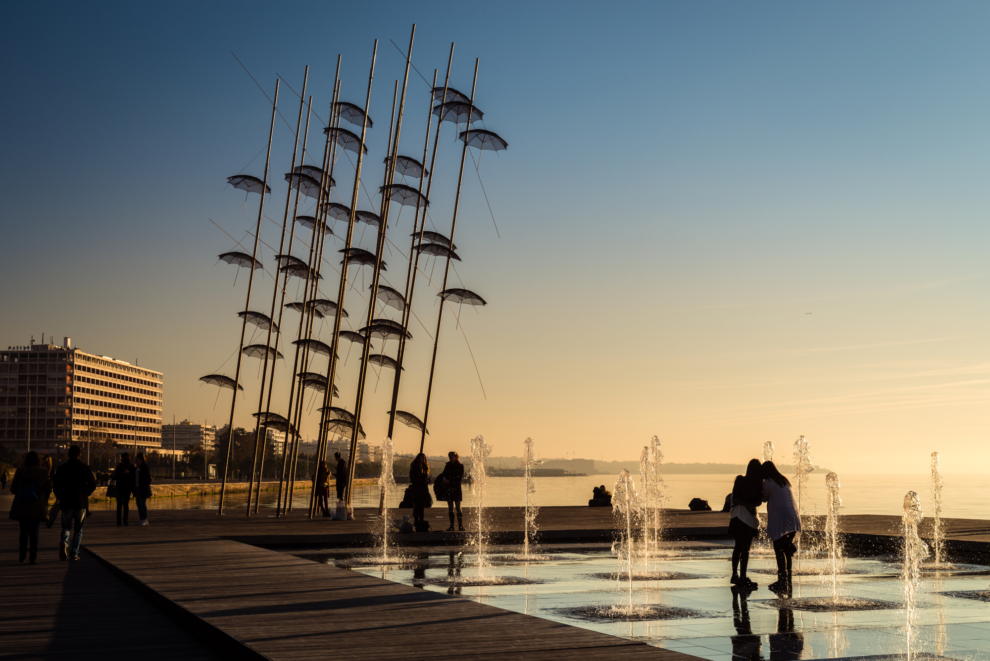 Ο ήλιος κατεβαίνει σιγά σιγά και βάφει τον Θερμαϊκό με πορτοκαλοροζ αποχρώσεις, ο κόσμος περπατά χαλαρά, άλλοι κάνουν ποδήλατο και κάποιοι απλά κάθονται στα παγκάκια κοιτώντας τη θάλασσα, ενώ οι μουσικοί του δρόμου γεμίζουν την ατμόσφαιρα με τραγούδια.