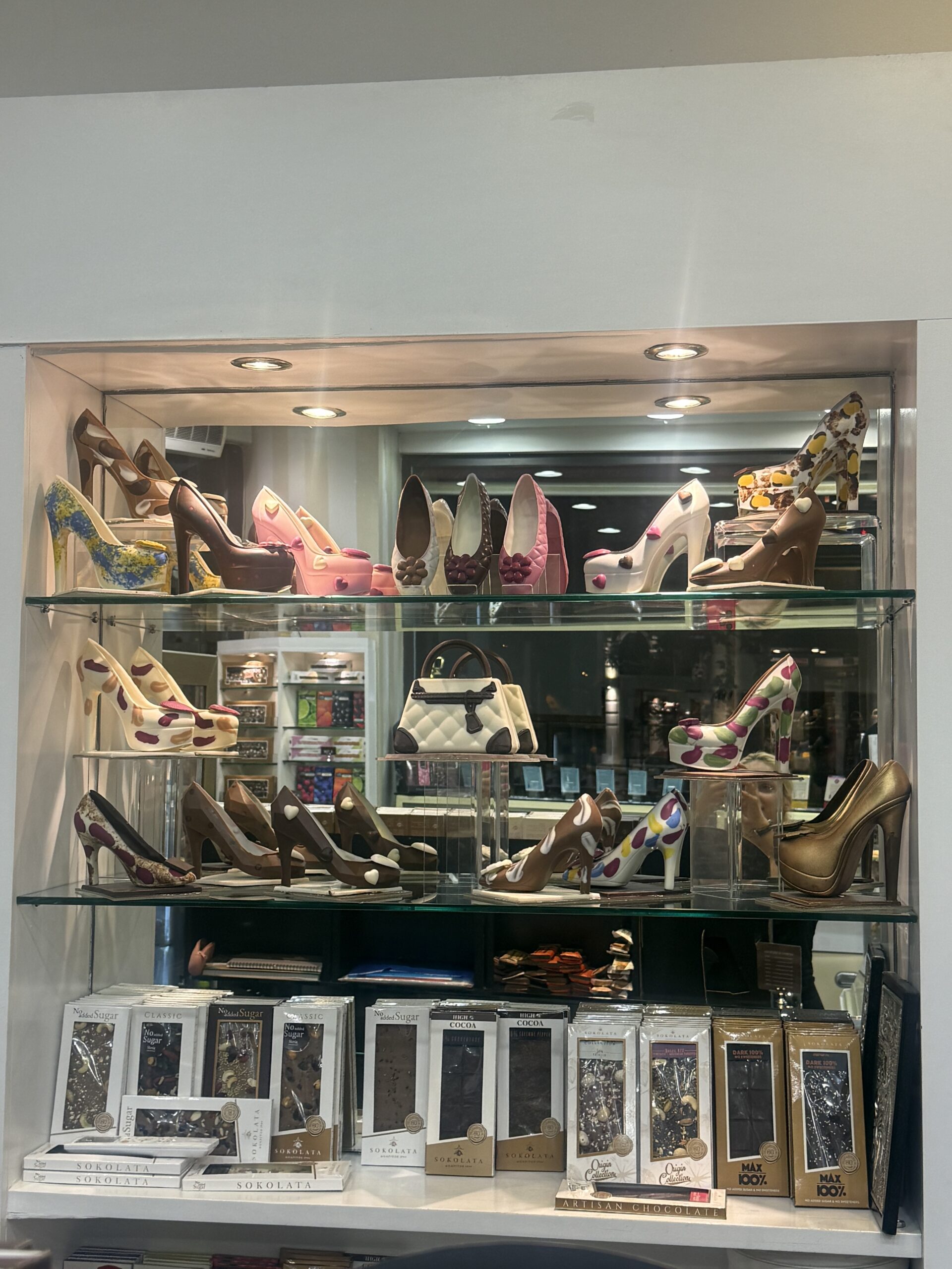 Tώρα που μιλάμε για γλυκό, υπάρχει ένα μέρος που δεν μπορώ να παραλείψω. Το ζαχαροπλαστείο Αγαπητός είναι για μένα μια μικρή στάση χαράς μέσα στην πόλη. Οι βιτρίνες του είναι γεμάτες με μικροσκοπικά, αξιολάτρευτα τουρτάκια που μοιάζουν σχεδόν σαν μικρά έργα τέχνης. Πολύχρωμα, προσεγμένα μέχρι την τελευταία λεπτομέρεια, σε κάνουν να δυσκολεύεσαι να διαλέξεις. Και ανάμεσα σε αυτά βρίσκονται και οι διάσημες σοκολάτες σε σχήμα τακουνιών, κάτι που πάντα μου τραβάει την προσοχή. Είναι από εκείνα τα μέρη που δεν πας μόνο για τη γεύση, αλλά και για την εικόνα, για εκείνη τη μικρή στιγμή πολυτέλειας που σου προσφέρει ένα όμορφο γλυκό.
