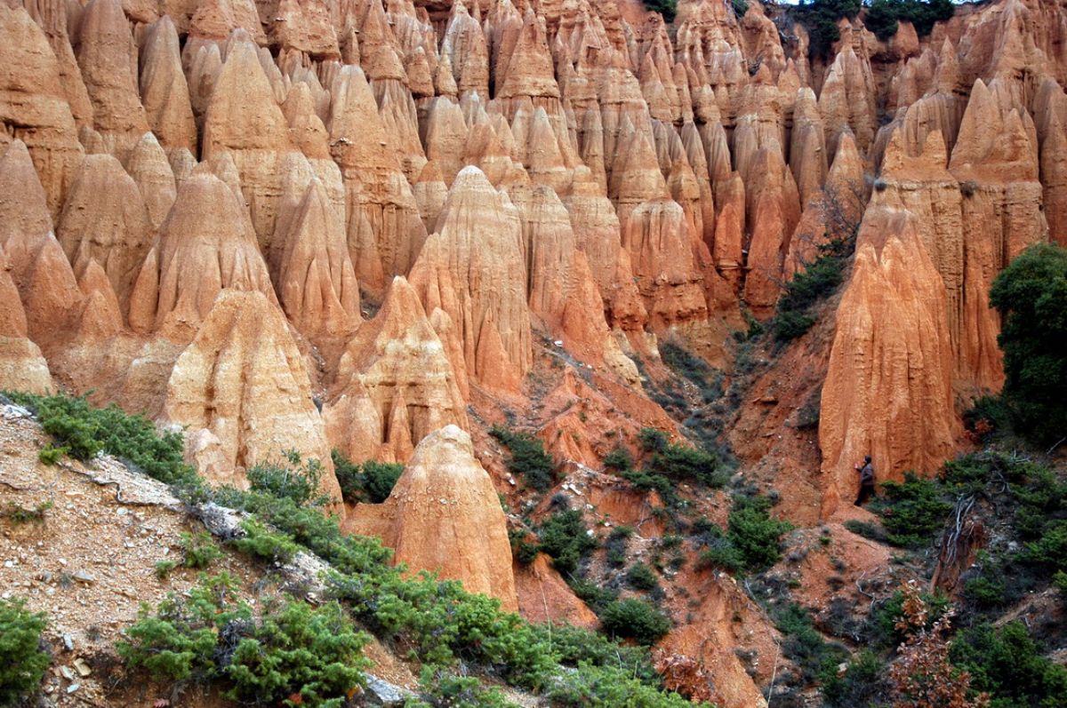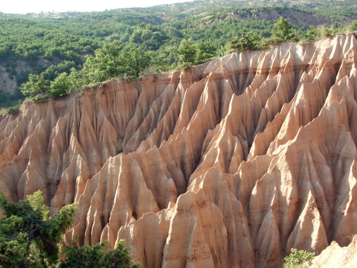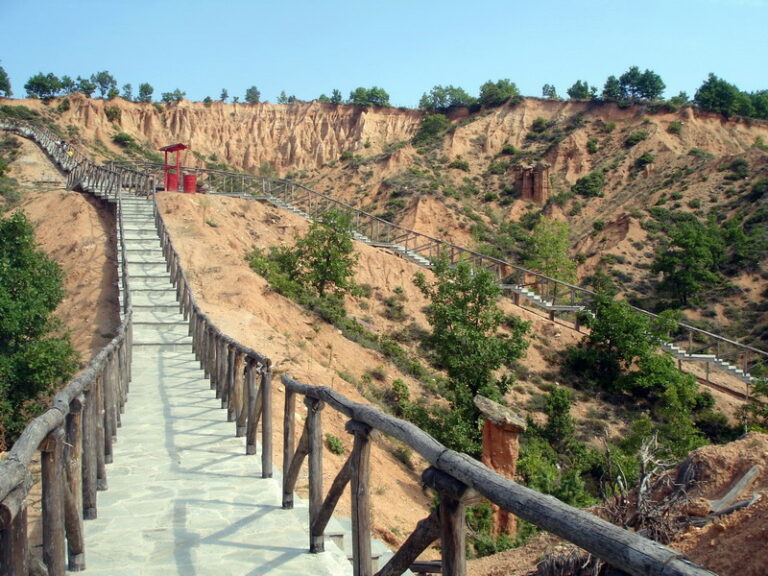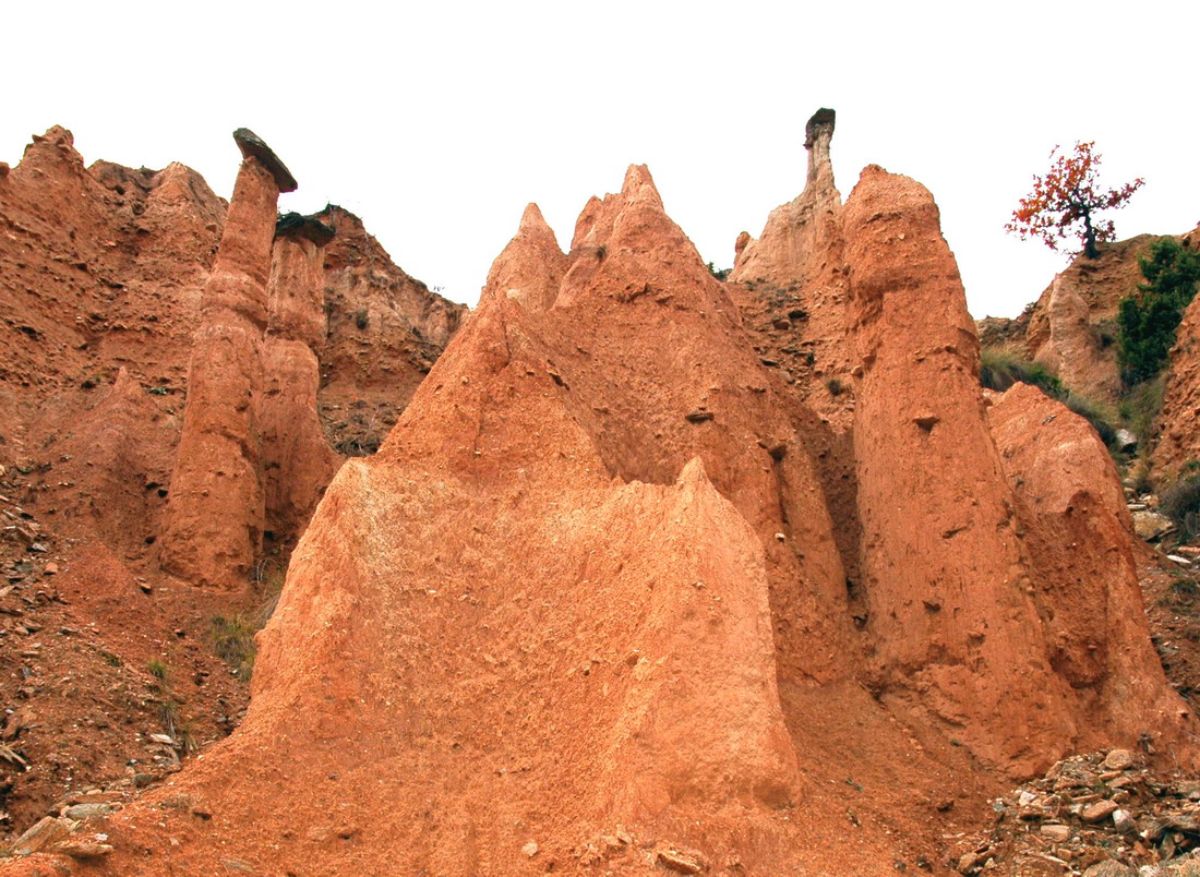 Πανύψηλα, κοκκινωπά και ελαφρώς κωνικά, τα Μπουχάρια αποτελούν ένα σπάνιο για τα ελληνικά δεδομένα γεωλογικό φαινόμενο που ξεκίνησε στην περιοχή σχεδόν 70.000 χρόνια πριν. Για αιώνες η συνεχής διάβρωση του εδάφους «έτρωγε» λίγο λίγο το υπέδαφος της περιοχής οδηγώντας στον σχηματισμό τεράστιων χωμάτινων αποθέσεων που παρά τις ασταμάτητες γεωλογικές μεταβολές, δεν κατέρρευσαν και παρέμειναν όρθιες.