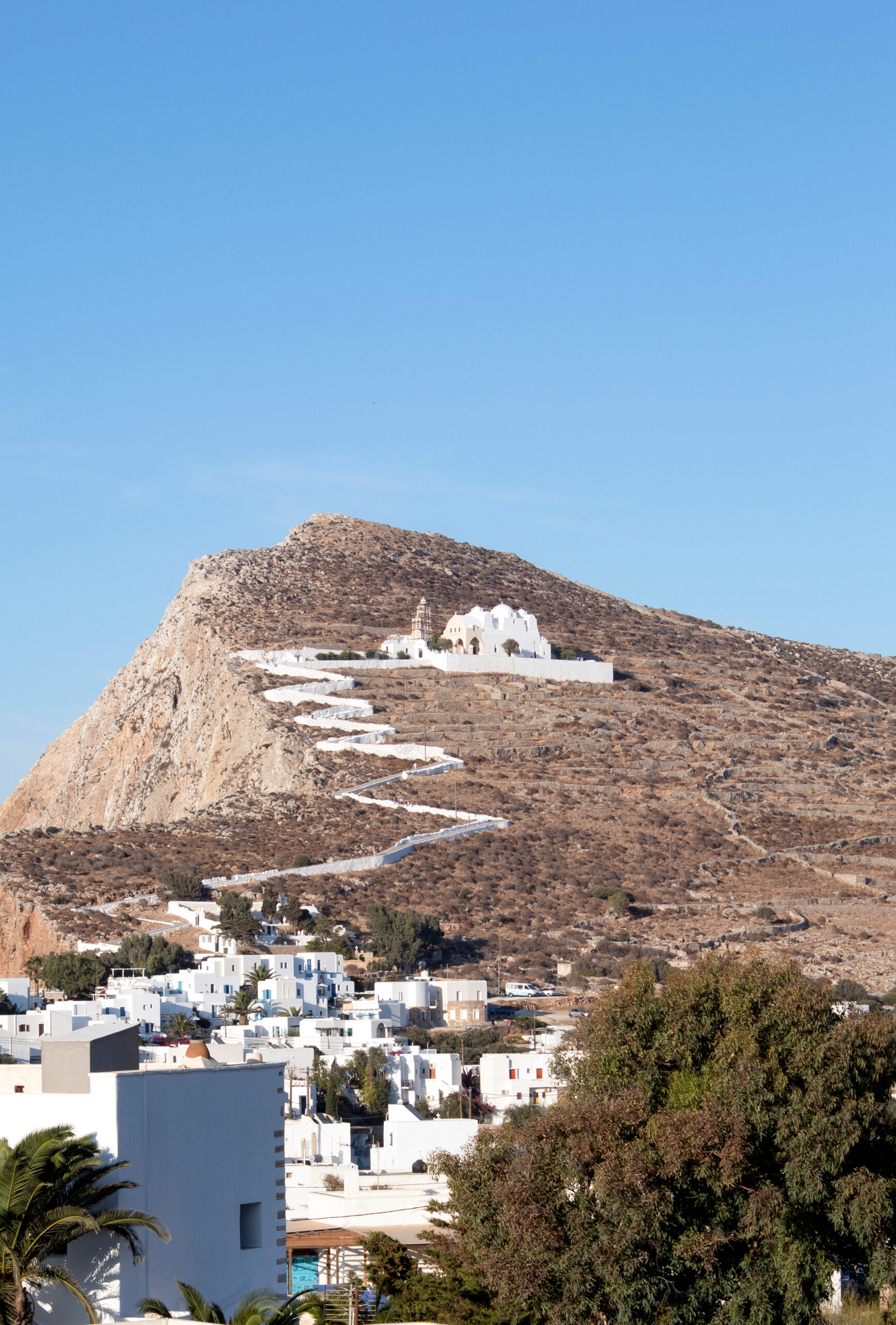 Μεγάλα luxury hotels δεν έχουν γίνει, ελάχιστες είναι οι boutique μονάδες με μοντέρνο ντιζάιν στο νησί. Κι όλα τα ξενοδοχεία τιμούν την αρχιτεκτονική και την κλίμακα των Κυκλάδων. Ευτυχώς. Όσο για τη Χώρα που τους ελκύει όλους σαν μαγνήτης, κρέμεται στους γκρεμούς, μισή μέσα μισή έξω από το κάστρο της, κι έχει φύλακα την Παναγία που λάμπει ολόασπρη πάνω στον βράχο της. Έχει πλατείες σκιερές, εκκλησίες παλιές, σοκάκια και πεζούλες. Στα καφενεία και τα καφέ της θα δώσεις ραντεβού για πρωινό και brunch. Εκεί θα φας τοπικές σπεσιαλιτέ, θα ψωνίσεις, θα πιείς και θα χορέψεις, θα ρεμβάσεις, θα διαβάσεις πίνοντας τον καφέ σου, και θα απολαύσεις το ελληνικό καλοκαίρι. Αυθεντικό αιγαιοπελαγίτικο καλοκαίρι με το αγέρι να θροΐζει τα φύλλα των δέντρων και τα λουλούδια να μοσχομυρίζουν σε παρτέρια και γλάστρες. Το απογευματάκι θα φτάσεις ως την Άνω Μεριά. Εκεί κι αν θα νιώσεις τη Φολέγανδρο όπως ήταν άλλοτε, με τις αγροικίες και τις ξερολιθιές να κεντάνε τα τοπία συγκρατώντας το λιγοστό καλλιεργήσιμο χώμα, και την παραδοσιακή αγροτική ζωή να ξετυλίγεται μπροστά σου. Η κουλτούρα της αυτάρκειας σε όλο της το μεγαλείο.
