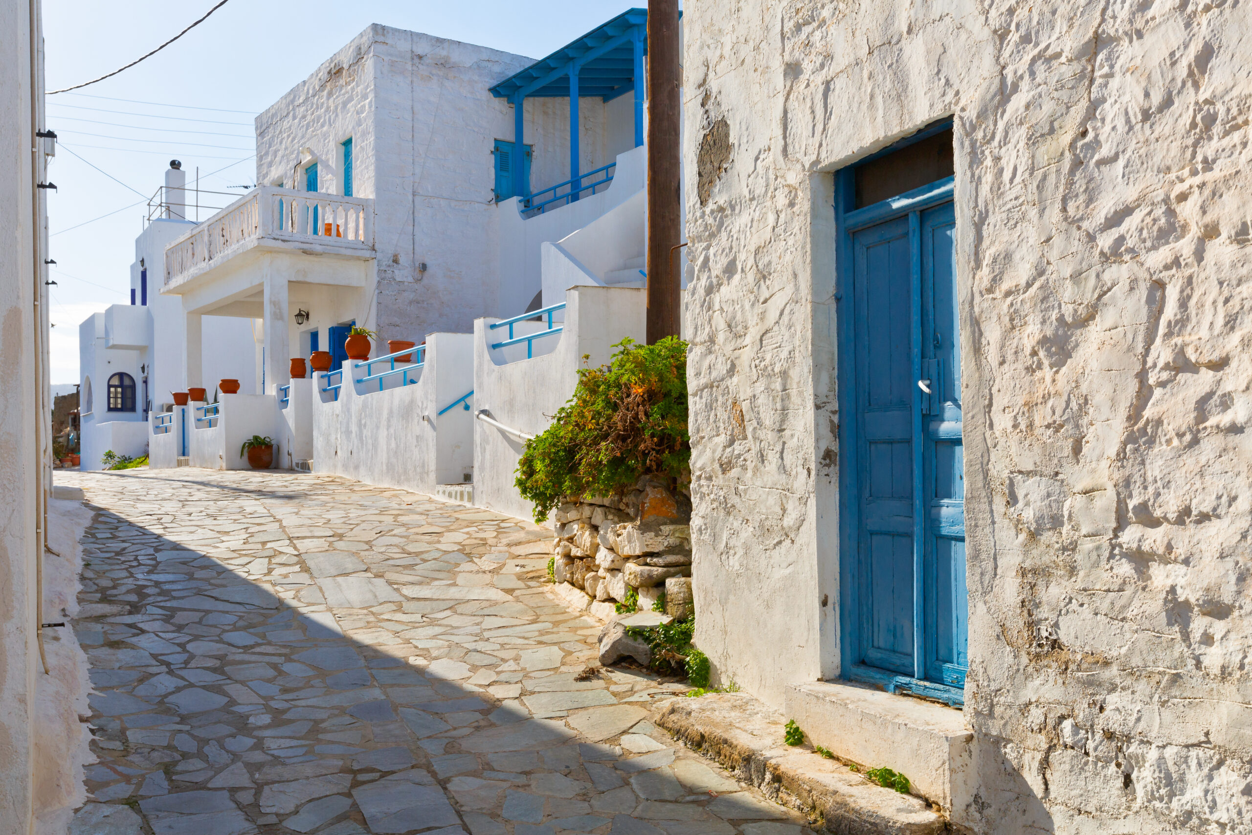 Το νησί έχει όλους και όλους δύο οικισμούς: τον Άγιο Γεώργιο, που είναι το λιμάνι και την Παναγία ή Χώρα που βρίσκεται στην ενδοχώρα του νησιού. Τα λιγοστά σπιτάκια και στους δύο οικισμούς έχουν το αυθεντικό κυκλαδίτικο στιλ με τις λιτές γραμμές και τις περιποιημένες αυλές, τόσο απλά αλλά τόσο όμορφα, σχεδόν γαλήνια.
