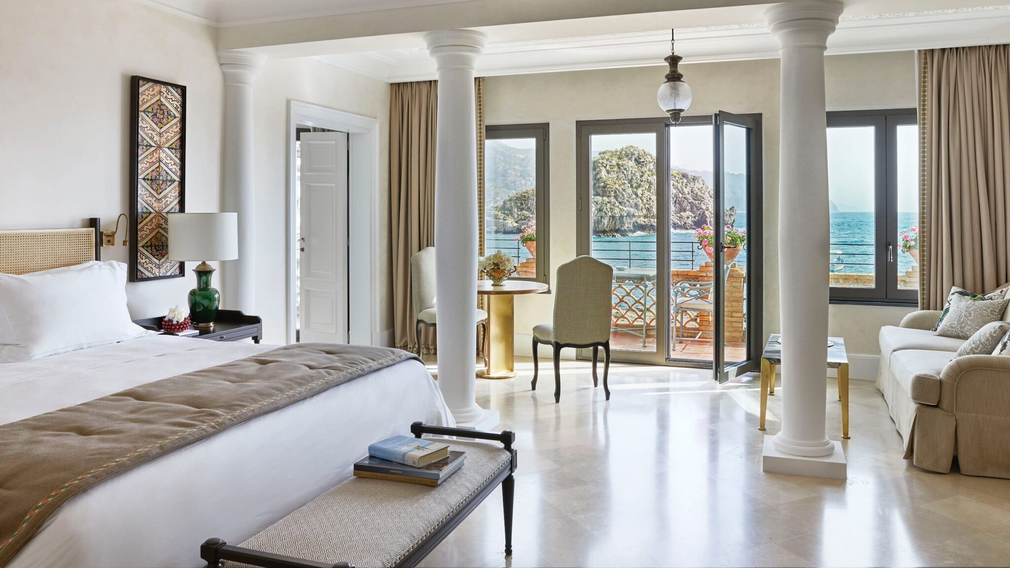 Belmond Villa Sant’Andrea: Άλλο ένα ξενοδοχείο σε έναν από τους πιο γραφικούς κόλπους της Ιταλίας, την Ταορμίνα. Σε μια ιδιωτική παραλία με πριβέ καμπάνες, θα βρείτε το πέντε αστέρων Belmond Villa Sant’Andrea με τα 71 κομψά δωμάτια και σουίτες. Αυτή η πρώην βίλα προσφέρει εξωτερική πισίνα με πανοραμική θέα, boat cruises στα καταγάλανα μεσογειακά νερά, φρέσκα θαλασσινά στο Oliviero Restaurant και ένα χαλαρωτικό μασάζ στο δωμάτιό σας.