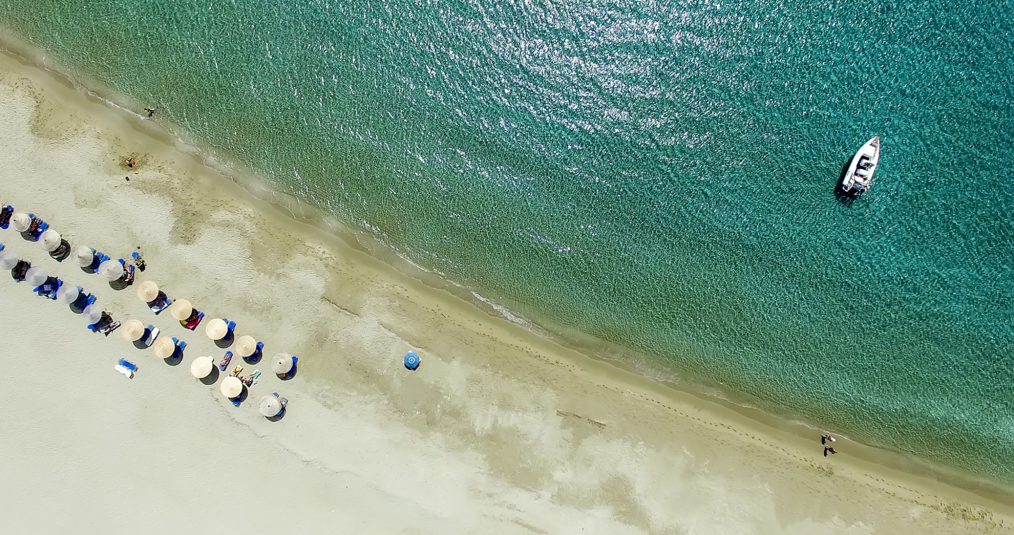 Ψάθη: μικρή σχετικά παραλία ιδανική για ήρεμες χαλαρές βουτιές καθώς είναι οργανωμένη μόνο στη μια πλευρά της.