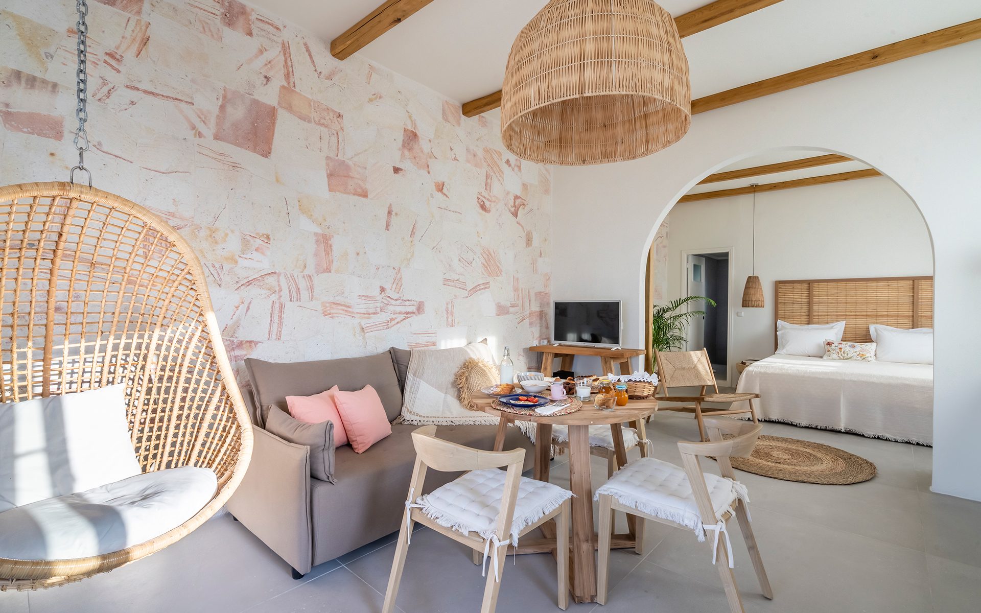Psathaki: Όμορφο συγκρότημα κυκλαδίτικης αισθητικής με άνετα, φωτεινά δωμάτια και σουίτες. Διακόσμηση λιτή αλλά στιλάτη, στρώματα cocomat και περιποιημένες βεράντες (Ψάθη, 2287051645, www.psathaki.gr).