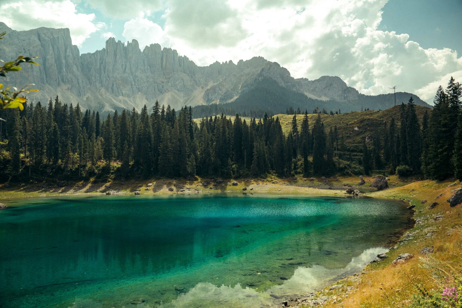 Βρισκόμαστε στο Νότιο Τιρόλο, κι όσο η ώρα περνά το τοπίο αλλάζει: η βλάστηση πυκνώνει, οι κορυφές γίνονται πιο δραματικές και η αίσθηση ότι εισερχόμαστε σε έναν άλλο κόσμο εντείνεται. Πρώτη μας στάση η Lago di Carezza, γνωστή και ως «Λίμνη του Ουράνιου Τόξου». Σαν κόσμημα φυλαγμένο σε πράσινη θήκη, η λίμνη υπνωτίζει με τη σαγήνη της. Τα νερά της ουράνια και λαμπερά, με την ιριδίζουσα απόχρωσή τους να την καθιστούν από τις πιο ξεχωριστές των Δολομιτών, που παρότι μικρή, το βάθος της φτάνει τα 17 μέτρα. Κάθε βήμα στον περίγυρό της μοιάζει να κινείται ανάμεσα σε πραγματικότητα και φαντασία, όσο οι οδοντωτές κορυφές του Latemar εντυπωσιάζουν με τη διάταξή τους. Δεν είναι τυχαίο ότι οι τοπικοί θρύλοι μιλούν για μάγους και νεράιδες που κατοικούν εδώ, ντύνοντας τη φυσική ομορφιά της με ένα πέπλο μυστηρίου που αντηχεί σε κάθε της κυματισμό.