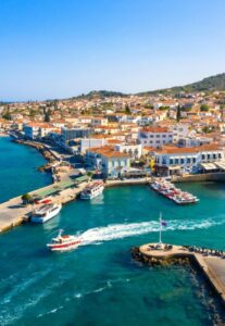 Απολαμβάνεις όμως και τις σύγχρονες παροχές, το εξαιρετικό φαγητό στα πολυτελή εστιατόρια και τις ψαροταβέρνες, τις αγορές, τη διαμονή στα boutique ξενοδοχεία, αλλά και μπάνιο σε πευκόφυτες παραλίες με αμμουδιά και βότσαλο. Η αρχιτεκτονική των σπιτιών του 18 ου αιώνα, όταν οι Σπέτσες έφτασαν στη μεγαλύτερη ακμή τους, είναι το ωραιότερο χαρακτηριστικό του οικισμού. Αδριάντες, μνημεία, εκδόσεις, εκδηλώσεις, φεστιβάλ και μουσεία υπενθυμίζουν τον ρόλο που έπαιξε ο σπετσιώτικος στόλος στην Ελληνική Επανάσταση. Και οι ιστορικές προσωπικότητες της Λασκαρίνας Μπουμπουλίνας και του Χατζηγιάννη Μέξη, τα αλλοτινά σπίτια των οποίων είναι θαυμάσια μουσεία, έχουν γίνει αθάνατες.