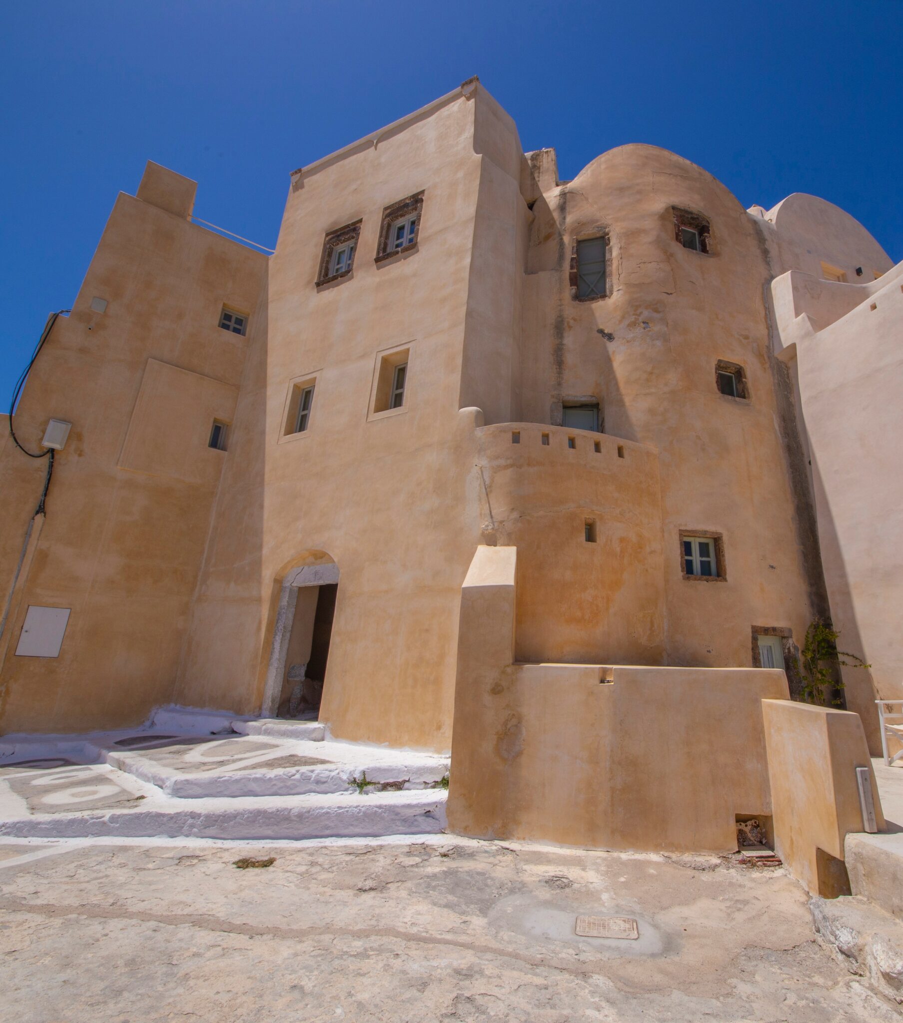 Τα χωριά της -η Οία, τα Φηρά, το Ημεροβίγλι και το Φηροστεφάνι- μοιάζουν σαν να «κατρακυλούν» κτισμένα στο χείλος των κάθετων βράχων. Μαζί με τα περίφημα υπόσκαφα που είναι κτισμένα στο ηφαιστειακό έδαφος, έχουν γίνει αντικείμενο μελέτης για τους αρχιτέκτονες όλου του κόσμου.