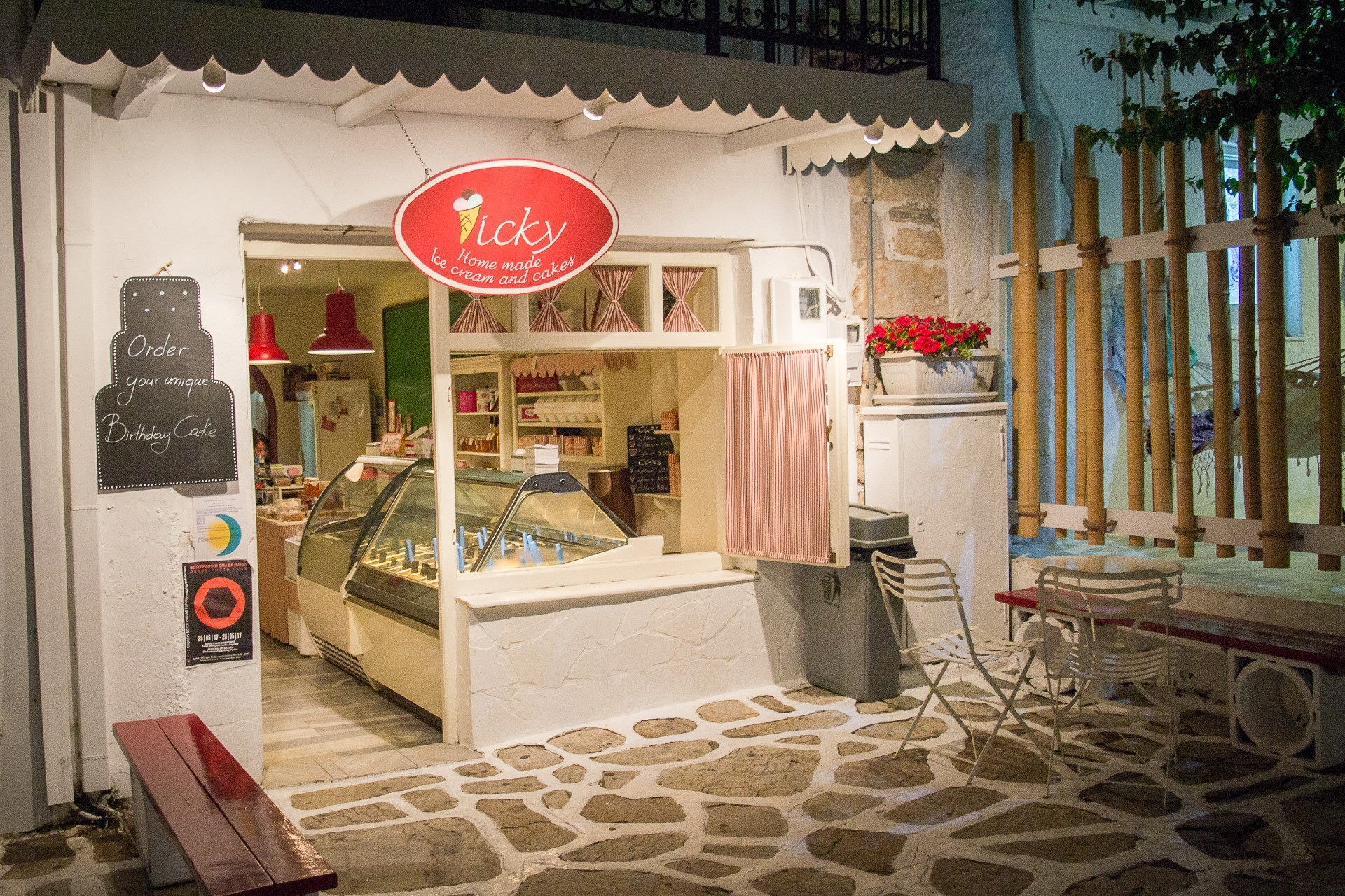 Χειροποίητο παγωτό ημέρας θα βρείτε στο τέλος του κεντρικού πεζόδρομου, στο Vicky’s. Για τις φρουτένιες γεύσεις χρησιμοποιούν ολόκληρα φρούτα και όχι πούλπες ή σκόνες, ενώ προμηθεύονται εκλεκτό γάλα ποιότητας. Μεγάλη ποικιλία σε γεύσεις, ενώ φτιάχνουν και τούρτες κατά παραγγελία.